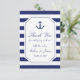 Nautical Anchor Navy Blue Stripe Wedding Thank You Card