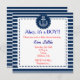Nautical Anchor Navy Blue Striped Baby Shower Invitation