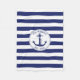 Nautical Anchor Navy Blue Stripes Family Name Fleece Blanket
