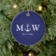 Wedding nautical anchor navy blue and white couple monogram initials Christmas Ceramic Ornament.