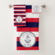 Marine Nautical Anchor Navy Blue White Red stripes Bath Towel Set Customise by adding Boat Name with the date Established