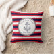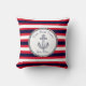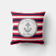 Nautical Anchor Navy Blue White Red stripes Throw Cushion