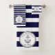 Marine Nautical Anchor Navy Blue White stripes Bath Towel Set Customise by adding Boat Name with the date Established