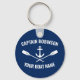 Nautical Anchor and Oars - Paddles with Your Personalized Captain and Boat Name on a Stylish Navy Blue Round Keychain.
