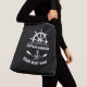 Nautical Boat, Ships Wheel - Helm and Crossed Oars with Your Personalised Captain Name and Boat Name on a Stylish Crossbody Large Black and White Tote Bag.