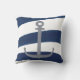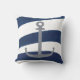 Nautical Anchor on Blue and White Wavy Stripes Cushion