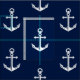 A unique piece of fabric featuring an elegant navy and white anchor pattern.
