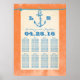 Nautical anchor blue and orange wedding seating charts