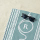 This nautical beach towel design has an anchor with a rope encircling a monogram letter, flanked by stripes, perfect for a day at the beach. White and neutral turquoise blue colour scheme.