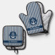Nautical Anchor Rope Navy White Stripes Custom Oven Mitt & Pot Holder Set