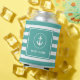 Nautical Striped Anchor Rope Boat Name White Frame Teal Can Cooler