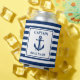 Nautical Navy Blue Striped Anchor Rope Captain Boat Name White Frame Can Cooler