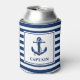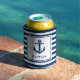 Nautical Navy Blue Striped Anchor Rope Captain White Frame Can Cooler