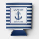 Nautical Anchor Rope Striped Captain Name Can Cooler