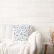 Blue and white nautical themed home decor throw pillow with anchors, sailboats, seashells.