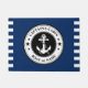 Custom Captain's Cabin and Boat name with Anchor, Rope and Stars Personalised Navy Blue, Black and White Doormat.