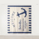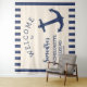 personalised nautical coastal theme bachelorette party tapestry in navy blue and cream with an anchor is perfect as a bachelorette party photo backdrop. Celebrate your bridal shower in style with the perfect nautical beach party theme in bold pink, the perfect theme for the nostalgic vintage sailor bride and her bridesmaids.