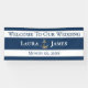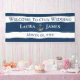 Designed in Nautical Navy with White Stripes and a silver Anchor, this Wedding Reception Banner is easy to personalise with the Bride and Groom's Names and Wedding Date. Simply replace our sample text with your details. It's fast and easy. Can be purchased with hanging accessories for outdoor or indoor use.
