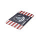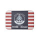 This image features a boat wheel, an anchor on a navy blue, and red striped background. Personalise the name for yourself or as a cute gift idea.