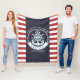 Nautical Anchor,Wheel, Navy Blue,Red Stripes Fleece Blanket