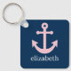 Nautical Anchor with Navy Pink Chevron Pattern Key Ring