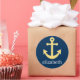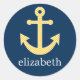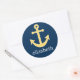 Nautical Anchor with Navy Yellow Chevron Pattern Classic Round Sticker