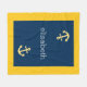 Nautical Anchor with Navy Yellow Chevron Pattern Fleece Blanket