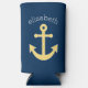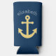 Nautical Anchor with Navy Yellow Chevron Pattern Seltzer Can Cooler