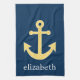 Nautical Anchor with Navy Yellow Chevron Pattern Tea Towel