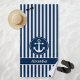 Nautical Anchor with Rope Navy Blue Stripes Beach Towel
