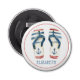 This cute coastal round bottle opener features a pair of flip flops in soft watercolor shades red, white and blue with nautical anchors. Personalise with your choice of name or special message. Perfect for personalised party favours.