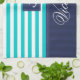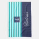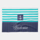Nautical Aqua Blue Stripes Anchor Personalised Tea Towel