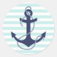Nautical Aqua & White Stripes Navy Blue Anchor Classic Round Sticker