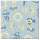 Nautical Aquatic Design done in pastel colours of blue, gold and white. Cute fishes, seahorse, jelly fish, Boat Ring Life Buoy Preserver / lifesaver, and seaweeds. Ocean / beach theme design.