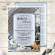 Bridal shower invitation featuring a nautical design with ropes, beach image and starfish with shells in dusty blue dreamy colours.