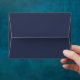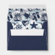 This envelope features a fun summer pattern of nautical elements including anchor, seagull, starfish and many more, all in navy blue with swirls and wavy aqua blue accents. The exterior is an optional coordinating navy blue. Search ID839 and ID840 to see other products with this design and additional colour options.