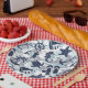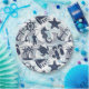 This paper plate features a fun summer pattern of nautical elements including anchor, seagull, starfish and many more, all in navy blue with swirls and wavy aqua blue accents. Search ID839 and ID840 to see other products with this design and additional colour options.