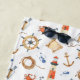 This is a nautical pattern beach towel with anchors, lighthouses, crabs, maps and many other cute nautical items. This design is perfect for your pool or vacation.