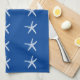 Nautical Beach White Starfish Patterns Deep Blue Tea Towel