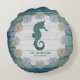 Nautical Beach Wood and Seahorse - Dark Blue Teal Round Cushion