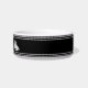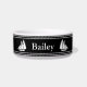 This black pet bowl has white display text in the centre. You can edit the text to show the correct name. This nautical pet bowl also has a white sailboat on either side of the text.