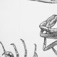 Nautical black and white peel-and-stick removable vinyl kitchen wallpaper with a seafood sketch illustration pattern.
