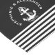 Stylish decorative table runner features a nautical black and white stripes with white anchor vector illustration and name on a black background you can easily change the colour. Matching items available in our store. www.zazzle.com/giftsforanyoccasions
