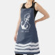 Accessorize your kitchen with this blue nautical beach house apon, featuring a white anchor and stripes, with "EST. 2023" customizable text. For further customization, please click the "Edit Using Design Tools" link and use the design tool to modify this template.
