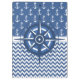 Classic nautical blue and white anchor and chevron pattern. Windrose / Compass at the centre.