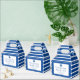 Perfectly classic nautical royal blue and white seersucker striped hangover relief kit favour box that is customisable.