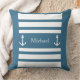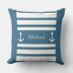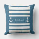 Nautical Blue And White Stripes Anchor Name Throw Pillow. You can personalise by writing text (name, family name, monogram...).