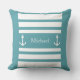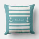 Nautical Blue And White Stripes Anchor Name Throw Pillow. You can personalise by writing text (name, family name, monogram...).