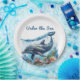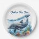 Celebrate the soon-to-be-born with this "Under the Sea" whimsical ocean inspired Paper Plates in blue colours with dolphin and wave for your Boy Baby Shower