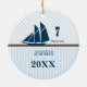 Nautical Blue Sail Boat Stripes Your Photo Ceramic Tree Decoration